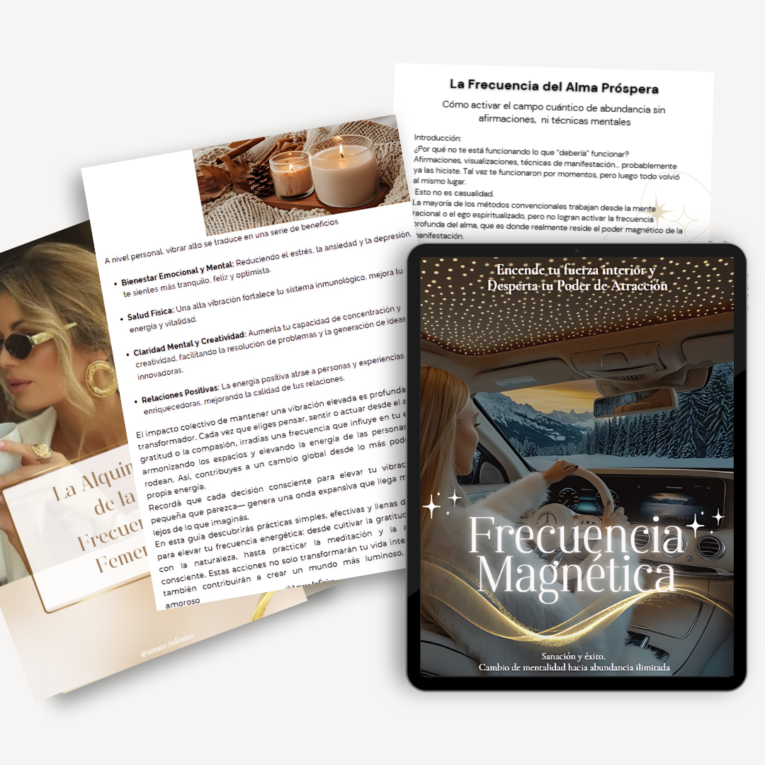 “Frecuencia Magnética” fue creado para guiarte paso a paso a reencender tu energía creadora, elevar tu vibración y recuperar tu poder de manifestar.