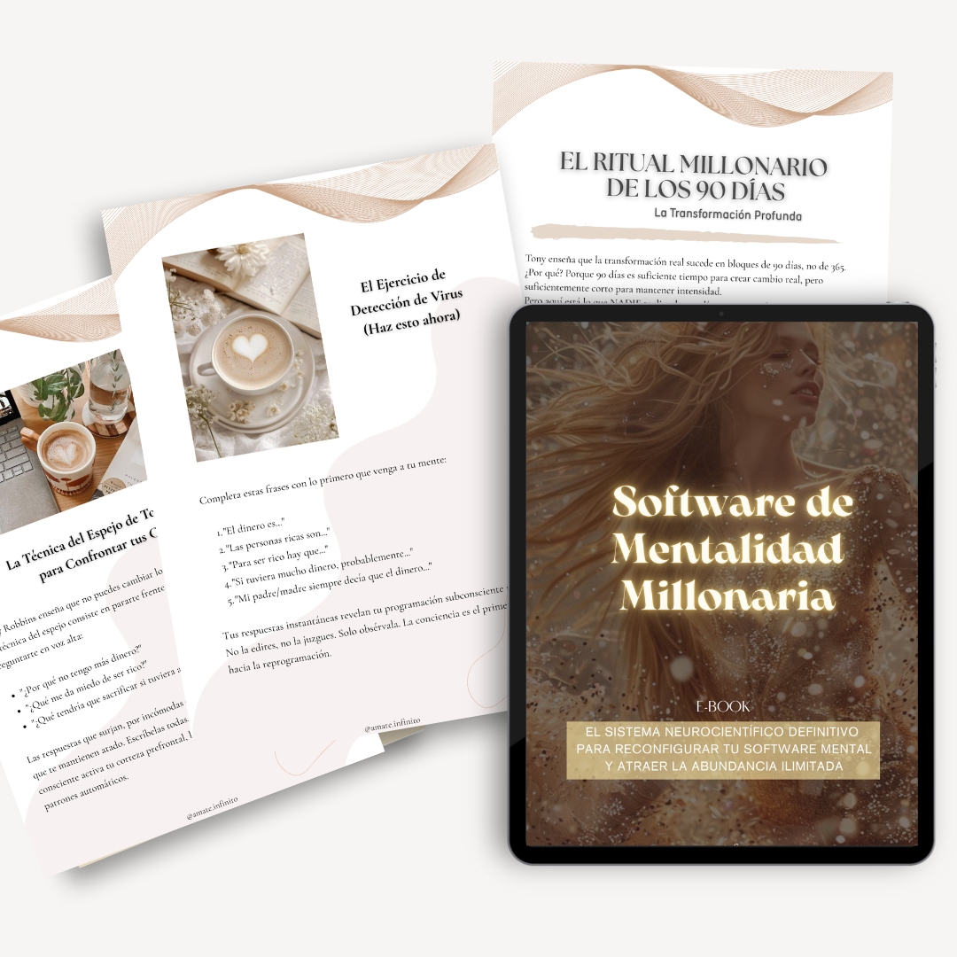 🔥 “Software de Mentalidad Millonaria” es mucho más que un libro. Vas a poder lograr elevar tu termostato financiero. Es un entrenamiento de reprogramación interna para transformar por completo la forma en que pensás, sentís y actuás frente al dinero, la abundancia y tu propio valor.